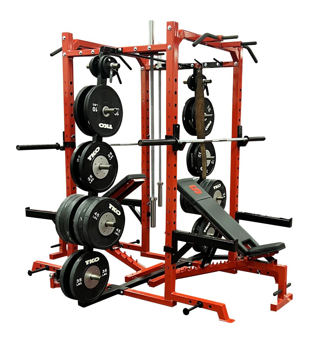 Dual Power Half Rack is designed to offer maximum flexibility in a small footprint. High gauge steel, fully welded and a powder coated finish make this rack ideal to withstand heavy usage. A wide variety of attachments and storage makes this a suitable option for most training facilities.
