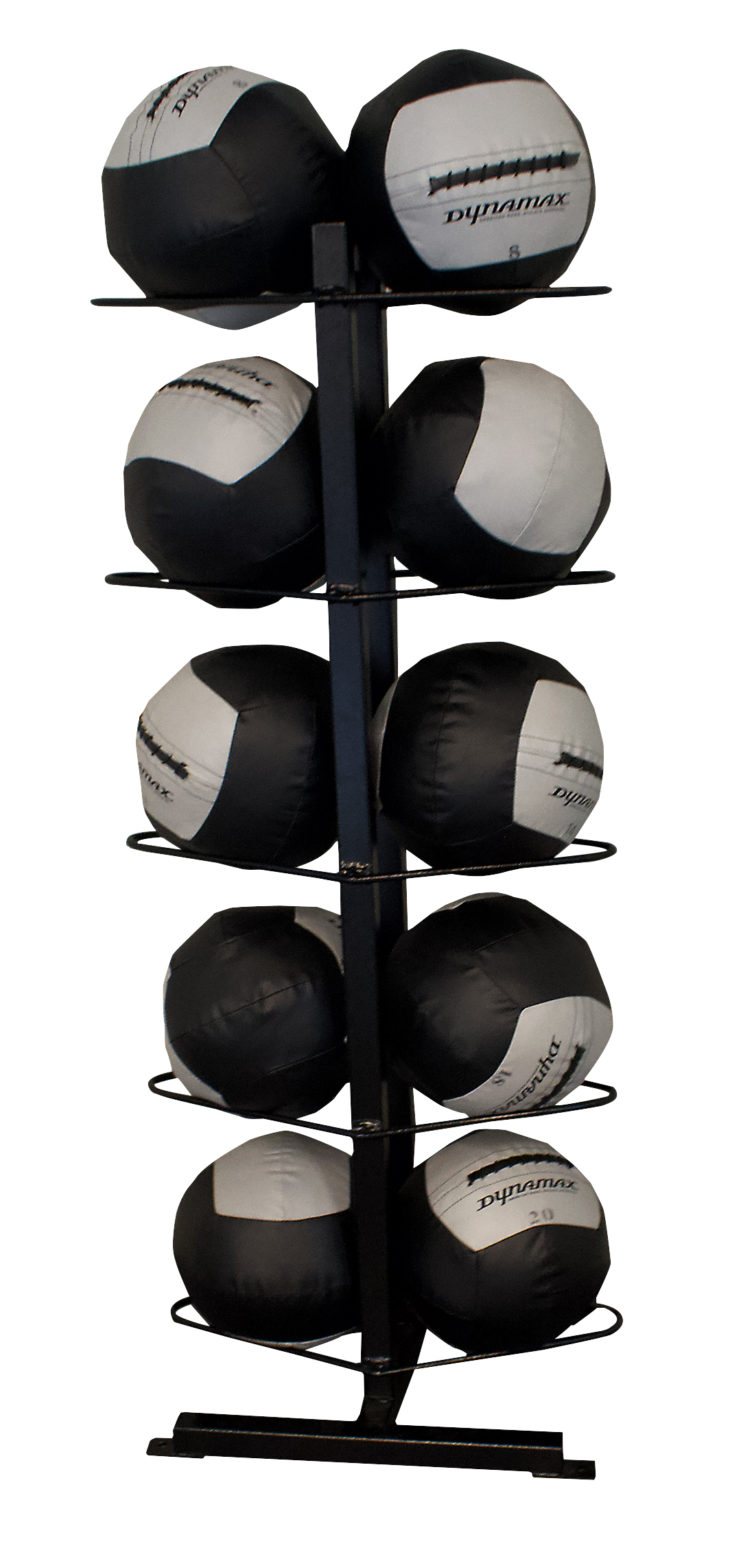 Our 10 ball medball rack is custom painted to match your room. A small footprint and sturdy base keeps this rack in place and out of the way. Customizable to your specific sets from 4 to 10 balls.